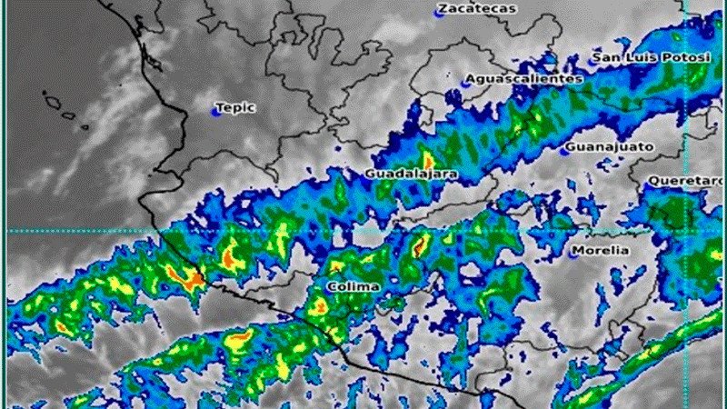 Durante la noche de este martes se prevén lluvias y chubascos con posibles descargas eléctricas, así como rachas de viento de hasta 40 km/h en algunas regiones de Jalisco, Michoacán y Guanajuato, así como algunos municipios de Colima, según informó la Comisión Nacional del Agua (Conagua).